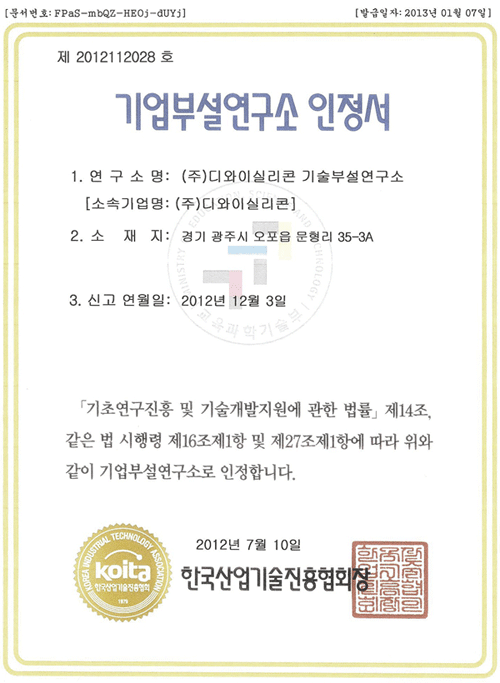 ÀúÈñ (ÁÖ)µð¿ÍÀ̽Ǹ®ÄÜÀº ÀÌ ºÐ¾ßÀÇ ³ôÀº Àü¹®¼º°ú °æÇèÀ» ÀÎÁ¤¹Þ¾Æ 2012³â Çѱ¹»ê¾÷±â¼úÁøÈïȸ·ÎºÎÅÍ ±â¾÷ºÎ¼³¿¬±¸¼Ò¸¦ Àΰ¡¹Þ¾Æ ¿î¿µÁß¿¡ ÀÖ½À´Ï´Ù.